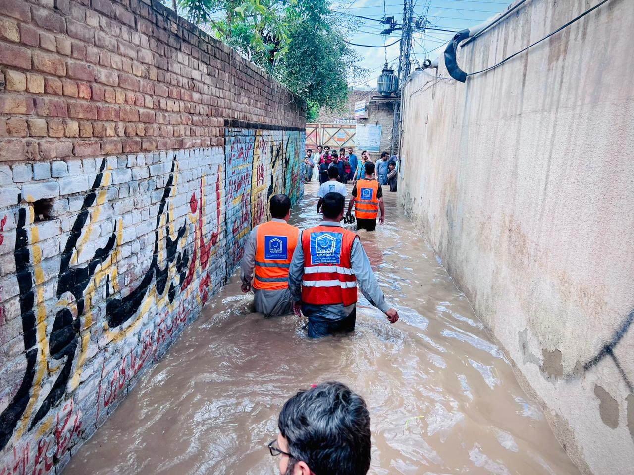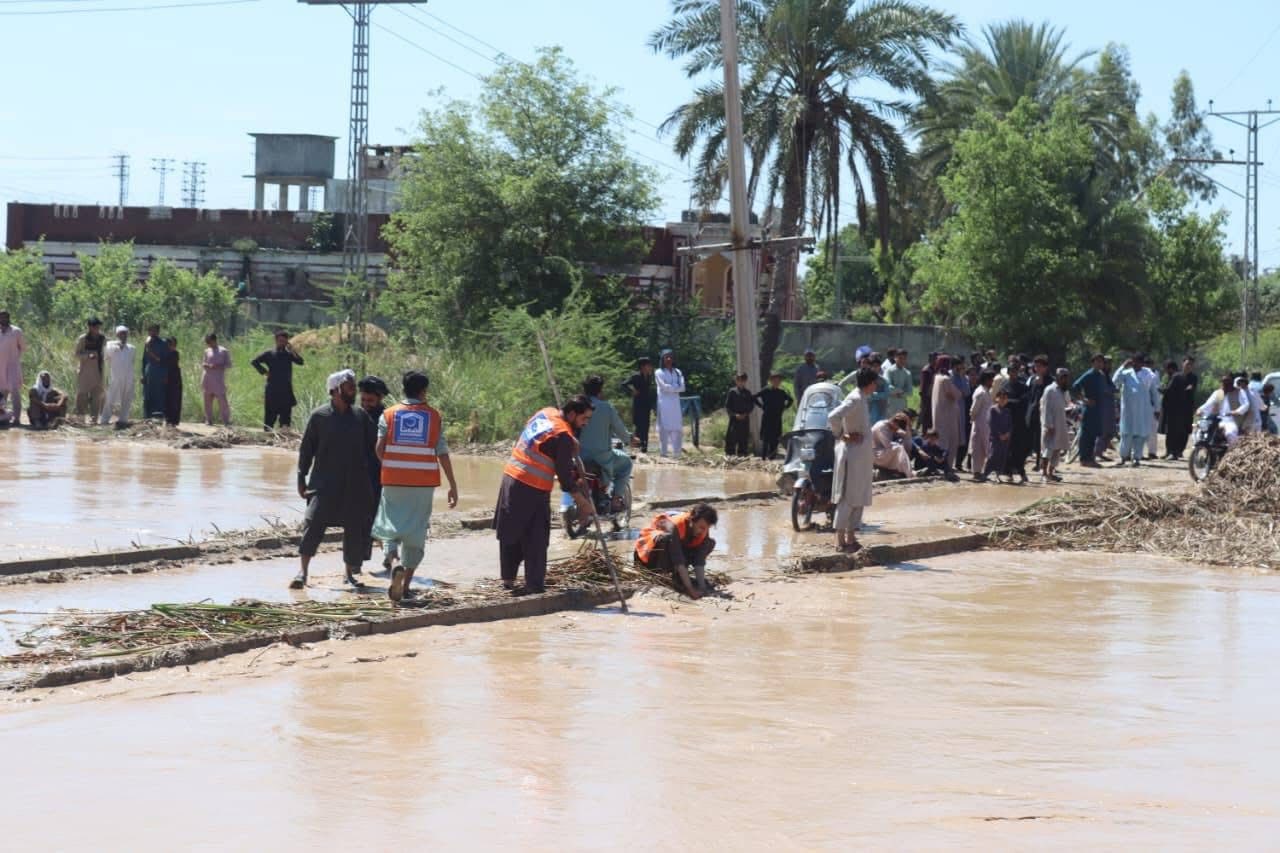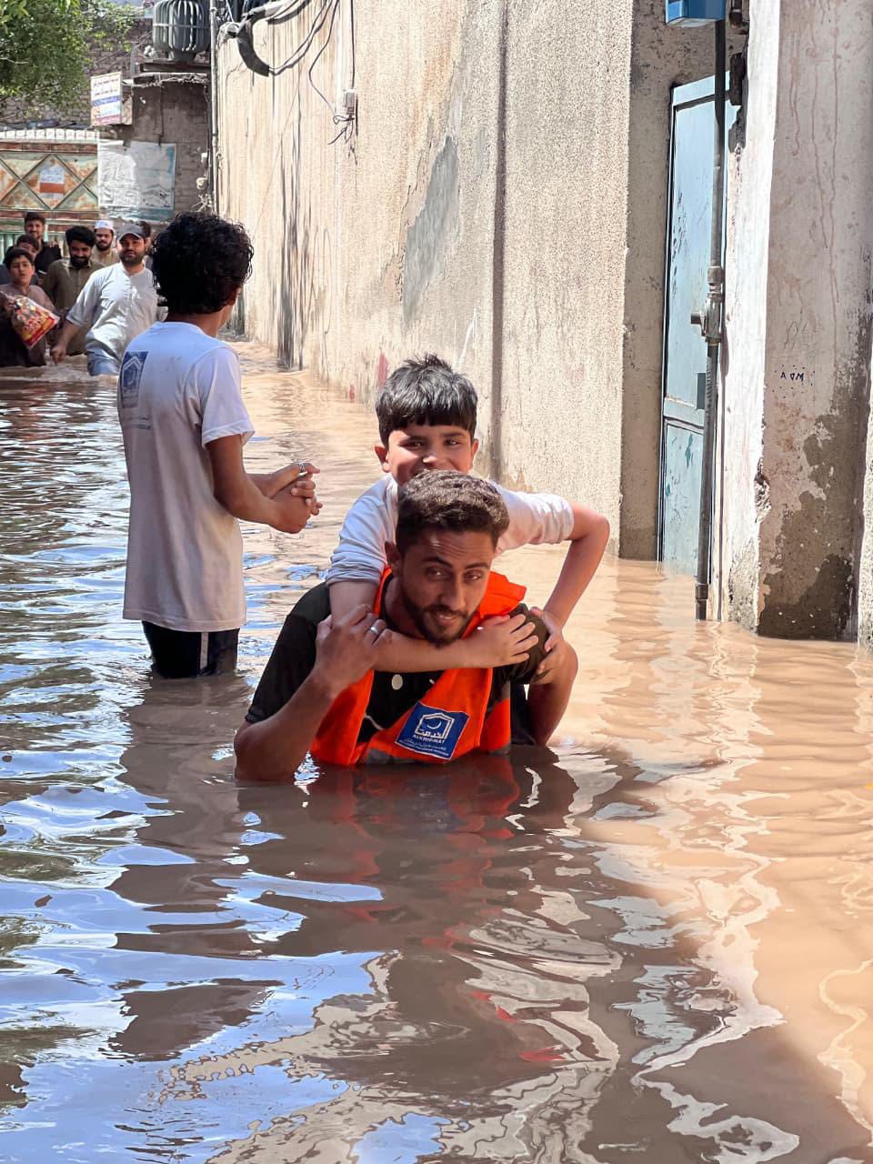 A similar flood situation emerged in Dera Ismail Khan, where rainwater entered multiple localities. In the village of Band Korai in Paharpur tehsil, Alkhidmat volunteers led by district president Abdul Mateen Khan Babar visited the flood-hit area, rescued stranded residents and shifted them to safer places.