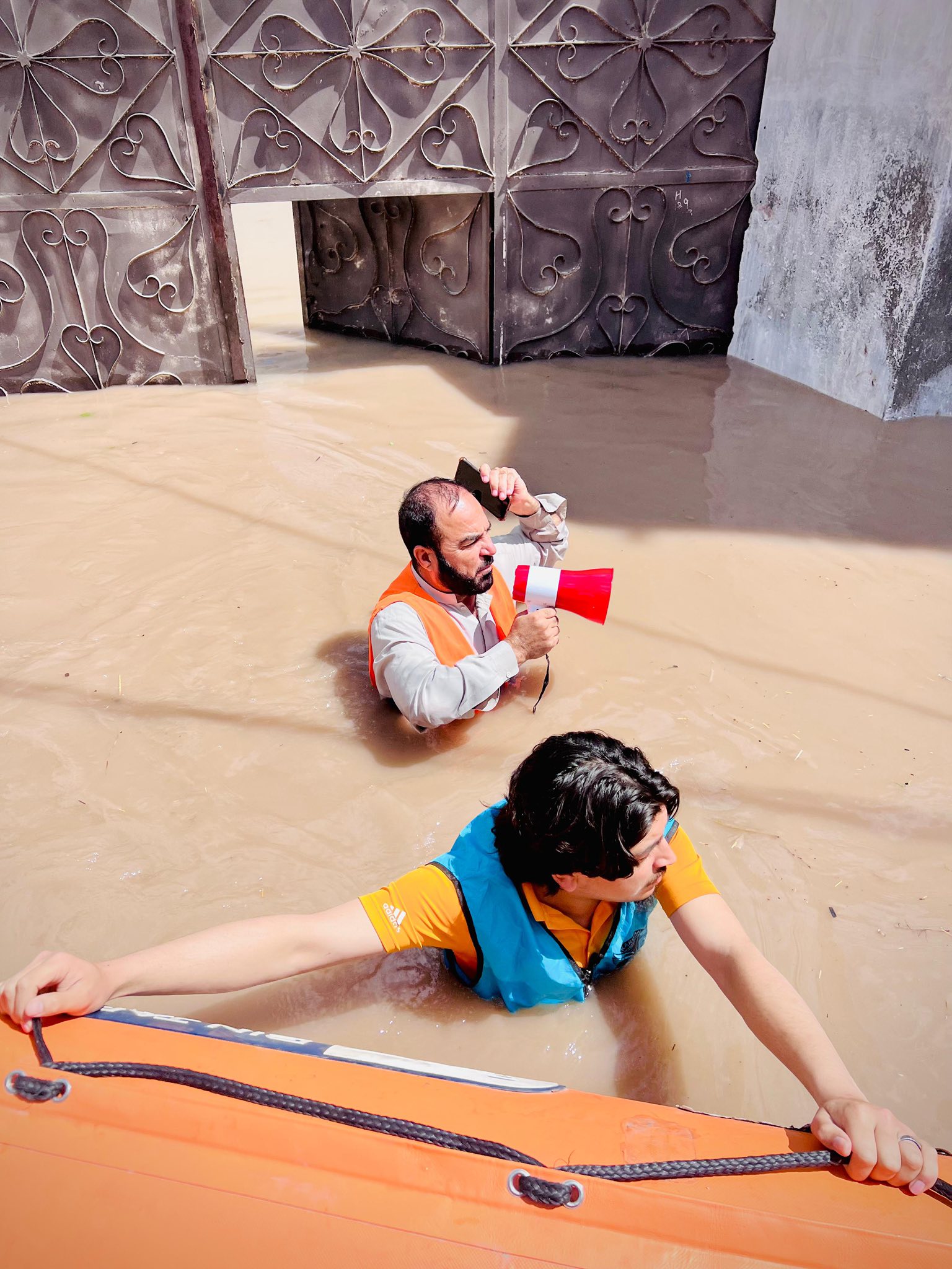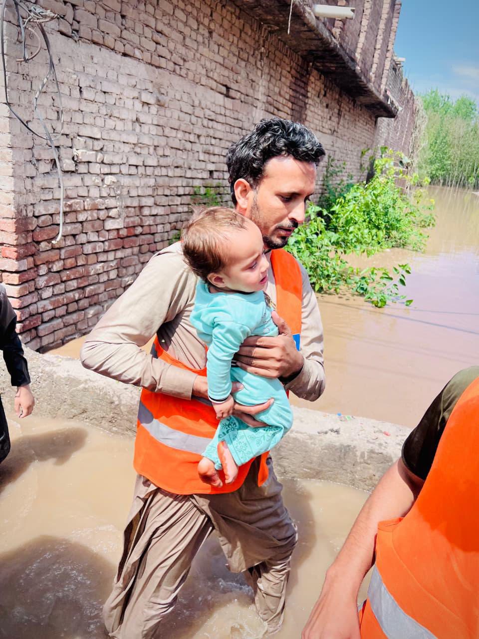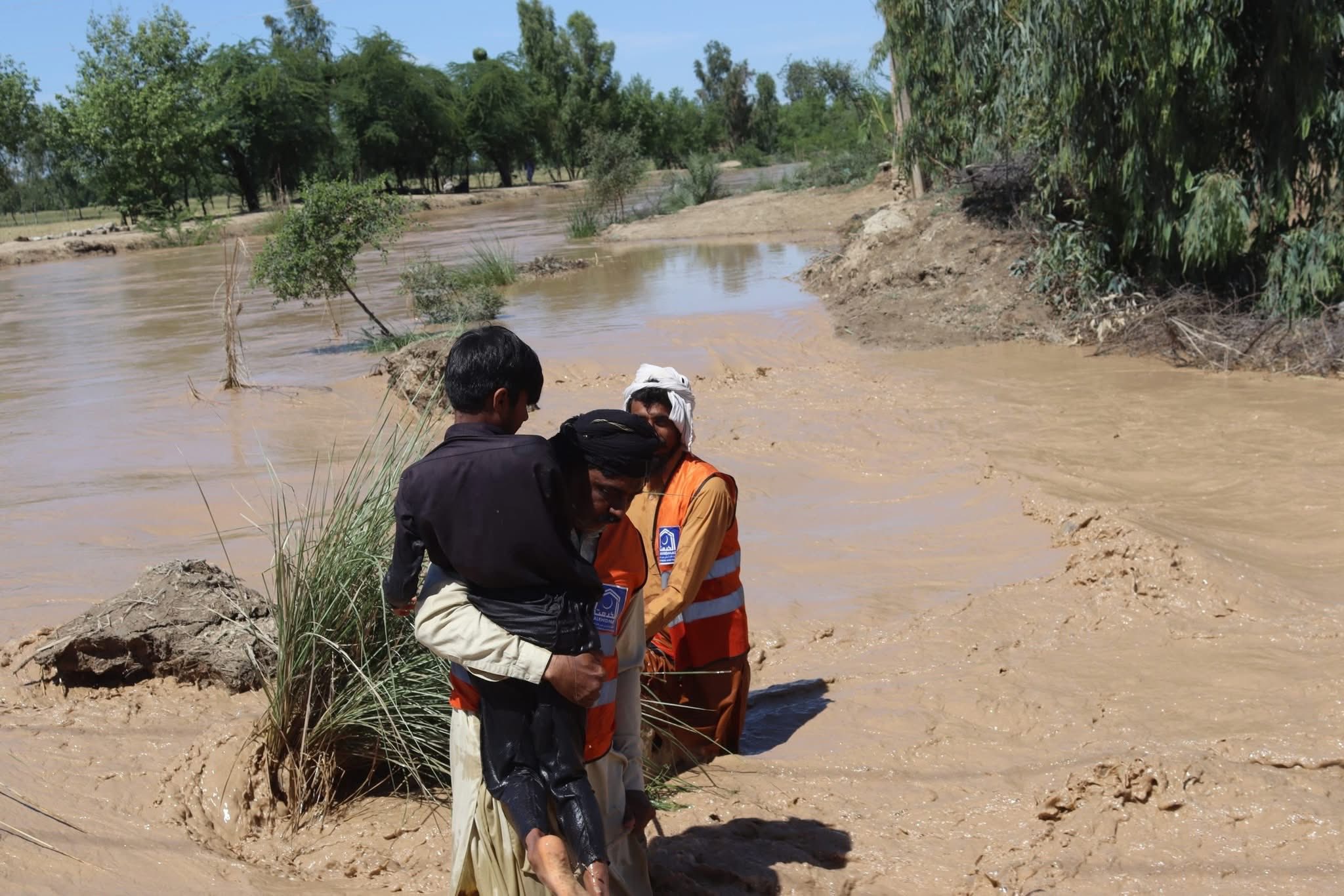 A similar flood situation emerged in Dera Ismail Khan, where rainwater entered multiple localities. In the village of Band Korai in Paharpur tehsil, Alkhidmat volunteers led by district president Abdul Mateen Khan Babar visited the flood-hit area, rescued stranded residents and shifted them to safer places.
