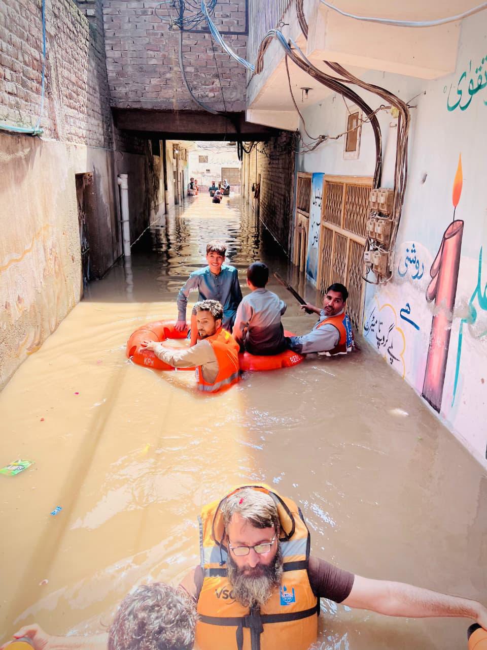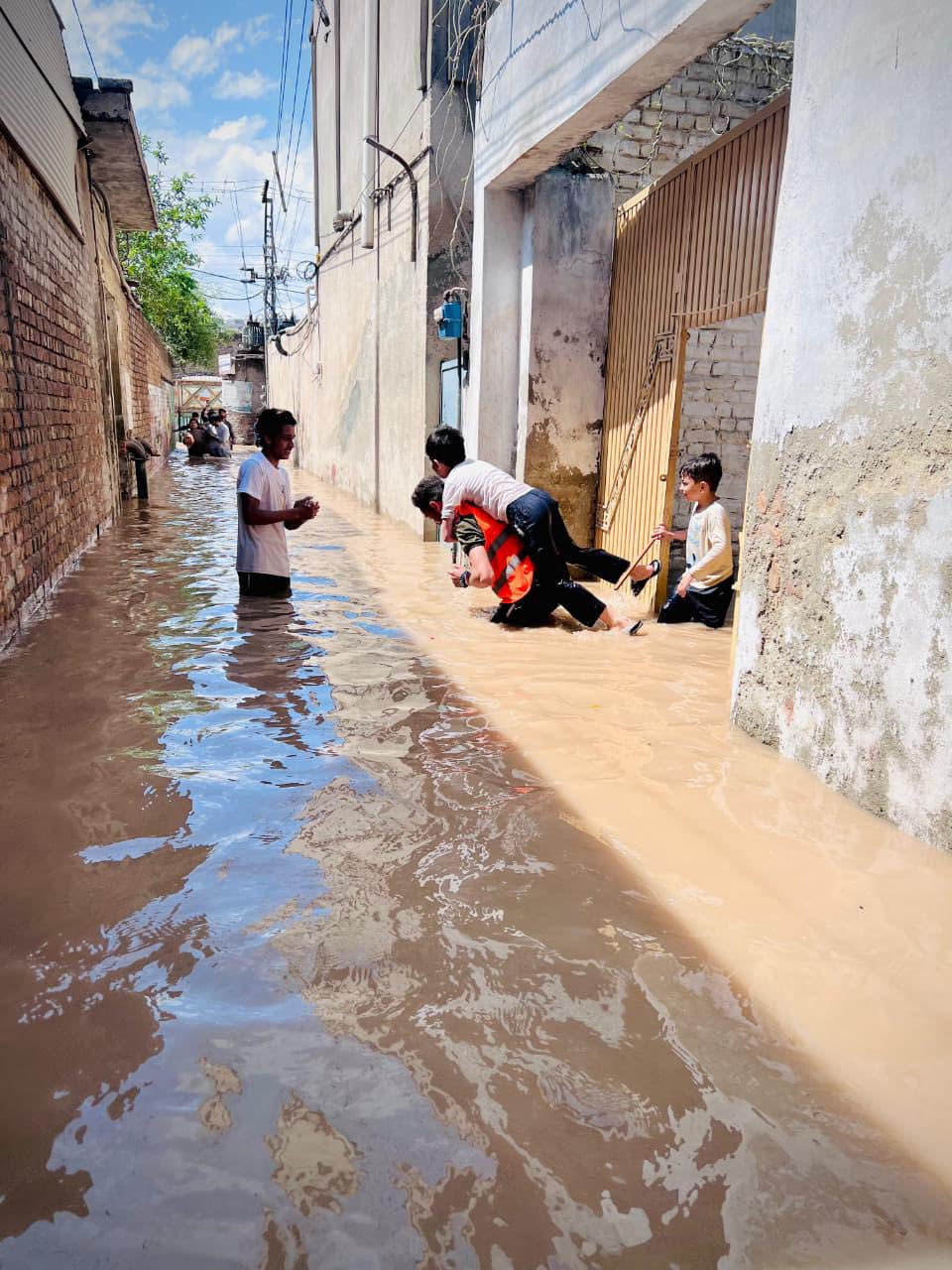 Flooding was reported in several parts of Peshawar after recent downpours, with low-lying neighborhoods inundated by rising water from the Budhni nullah. In Budhni Sardar Colony, rescue teams from Alkhidmat Foundation engaged in moving residents to safer locations and providing emergency relief to affected families.