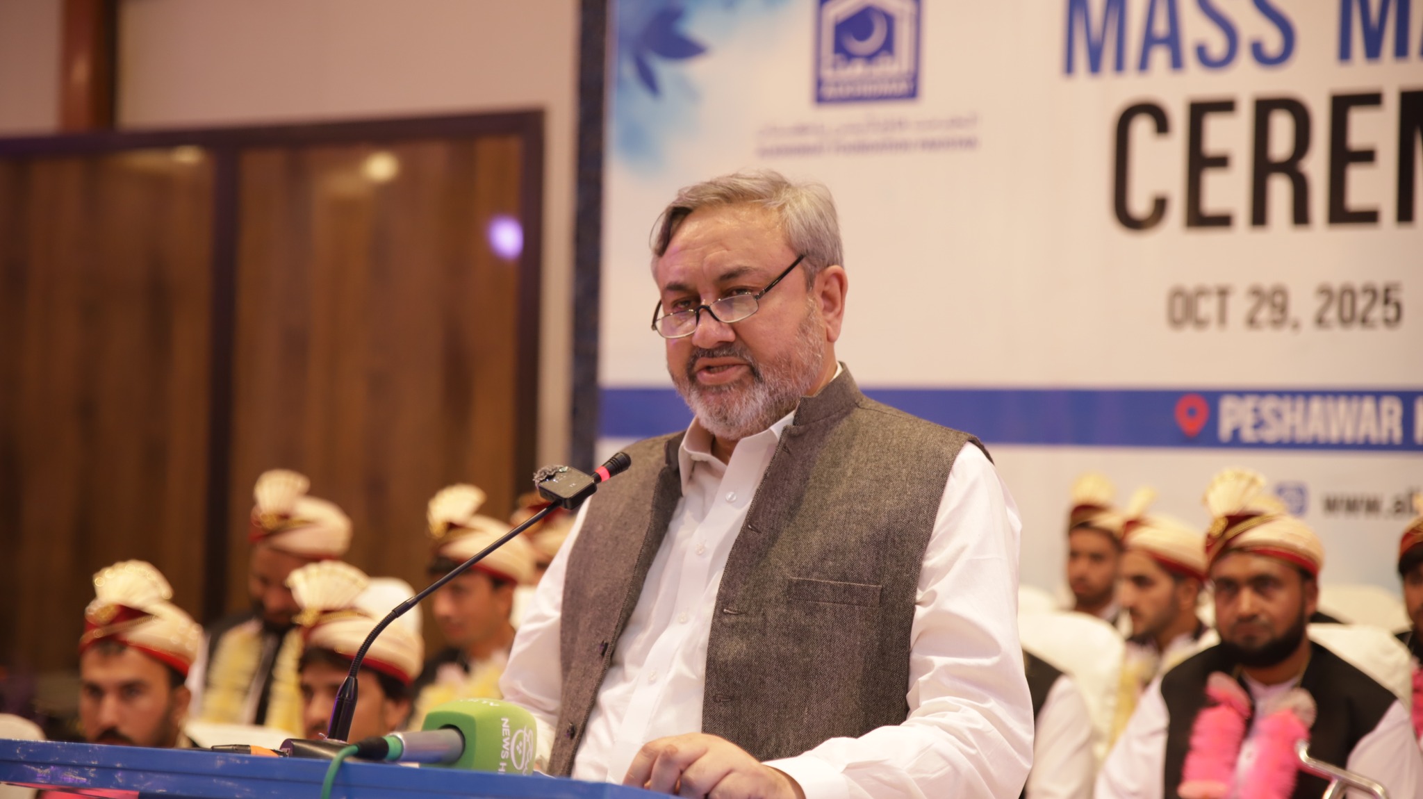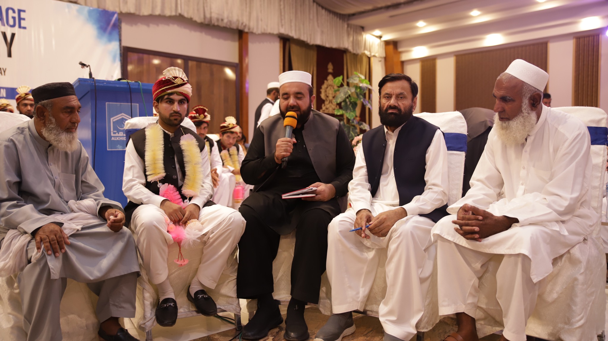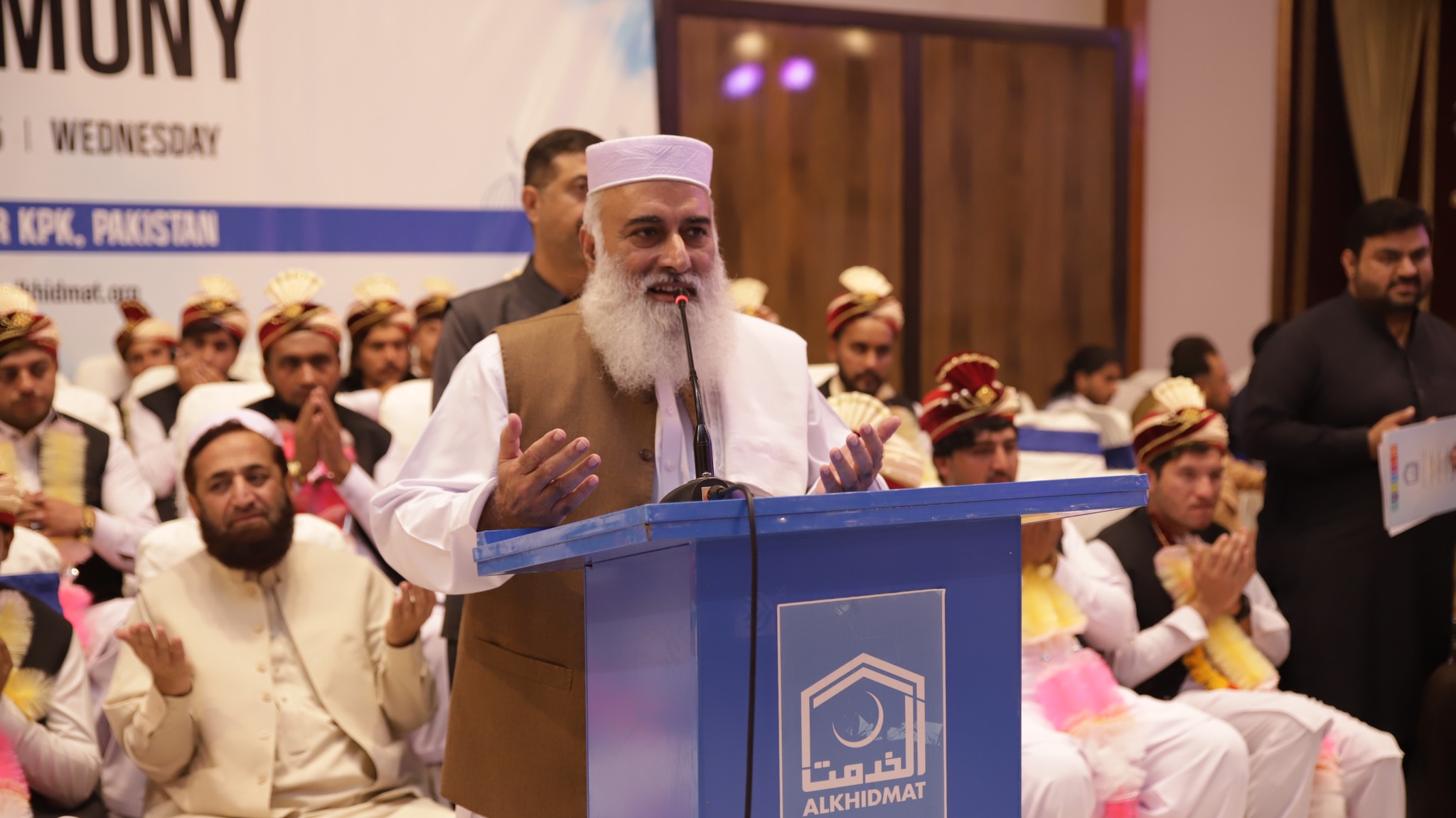 JI Khyber Pakhtunkhwa Central Ameer Abdul Wasi officiated the marriage contracts. Among those present were Alkhidmat Foundation Central Vice President Zikrullah Mujahid, former provincial minister Syed Zahir Ali Shah, JI District Ameer Bahrullah Khan, Alkhidmat Provincial President Khalid Waqas, District President Arbab Abdul Haseeb, Additional Deputy Commissioner Relief, President Sarhad Chamber of Commerce and Industries Junaid Altaf, Ms. Uzma Mukarram and families of the couples.