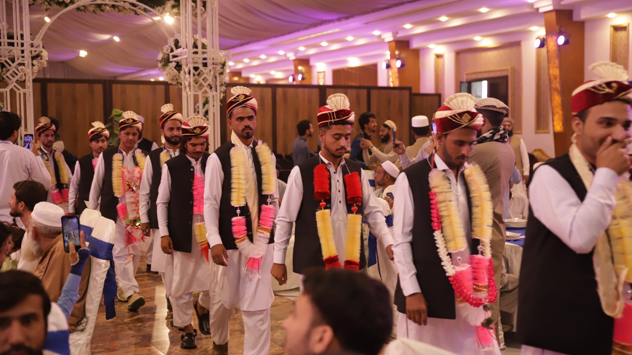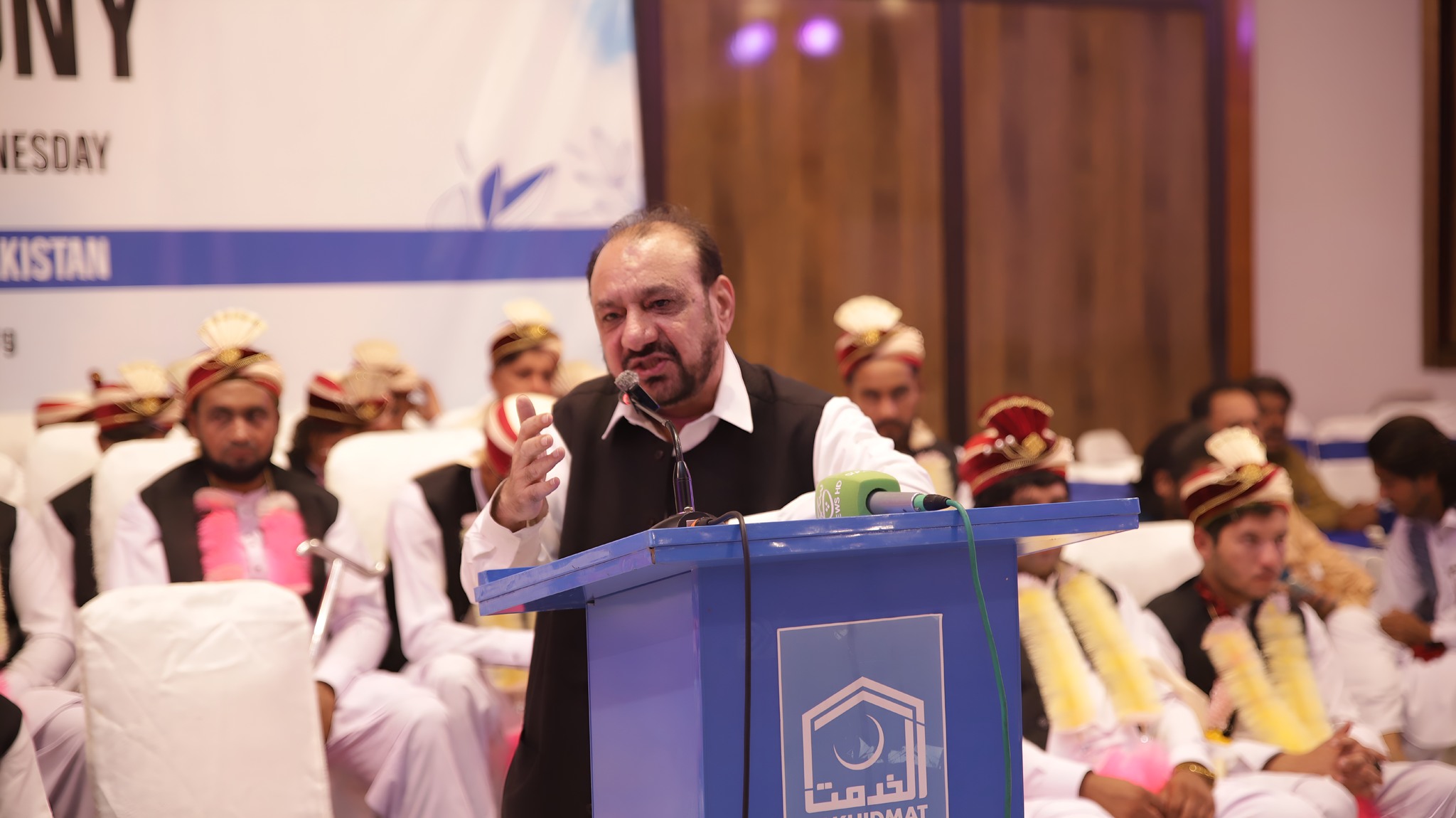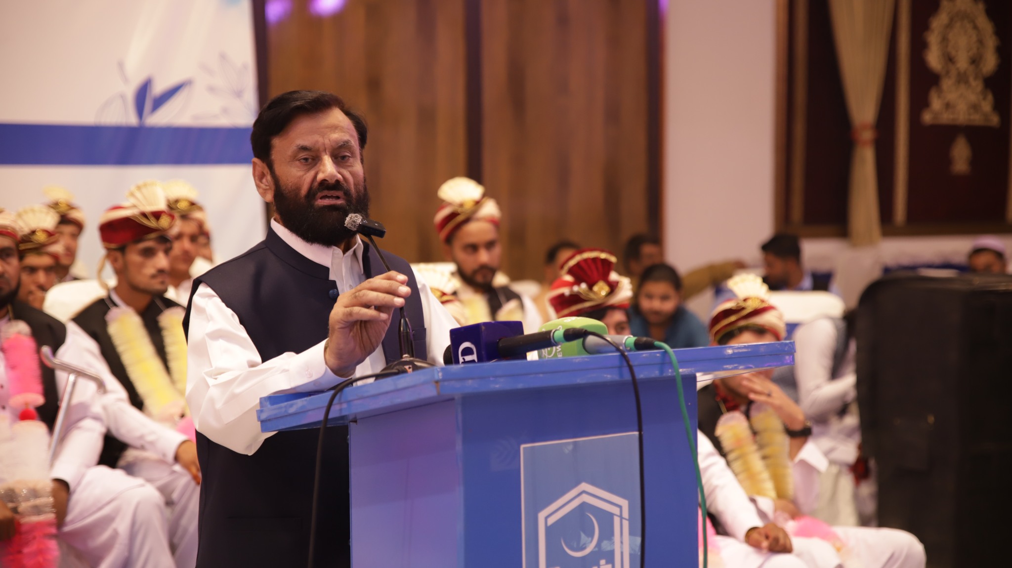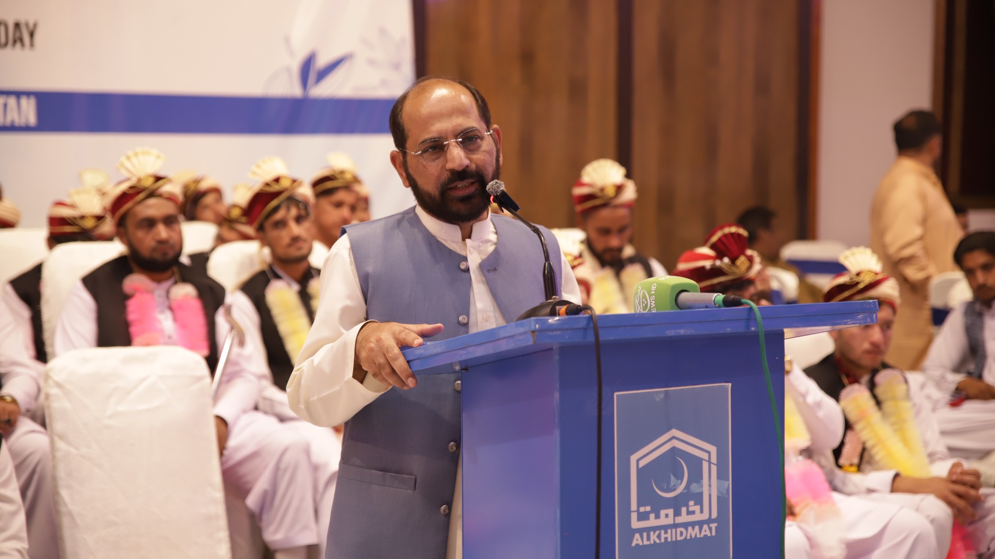JI Khyber Pakhtunkhwa Central Ameer Abdul Wasi officiated the marriage contracts. Among those present were Alkhidmat Foundation Central Vice President Zikrullah Mujahid, former provincial minister Syed Zahir Ali Shah, JI District Ameer Bahrullah Khan, Alkhidmat Provincial President Khalid Waqas, District President Arbab Abdul Haseeb, Additional Deputy Commissioner Relief, President Sarhad Chamber of Commerce and Industries Junaid Altaf, Ms. Uzma Mukarram and families of the couples.