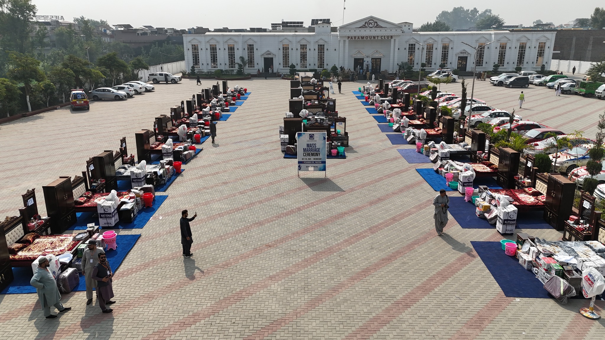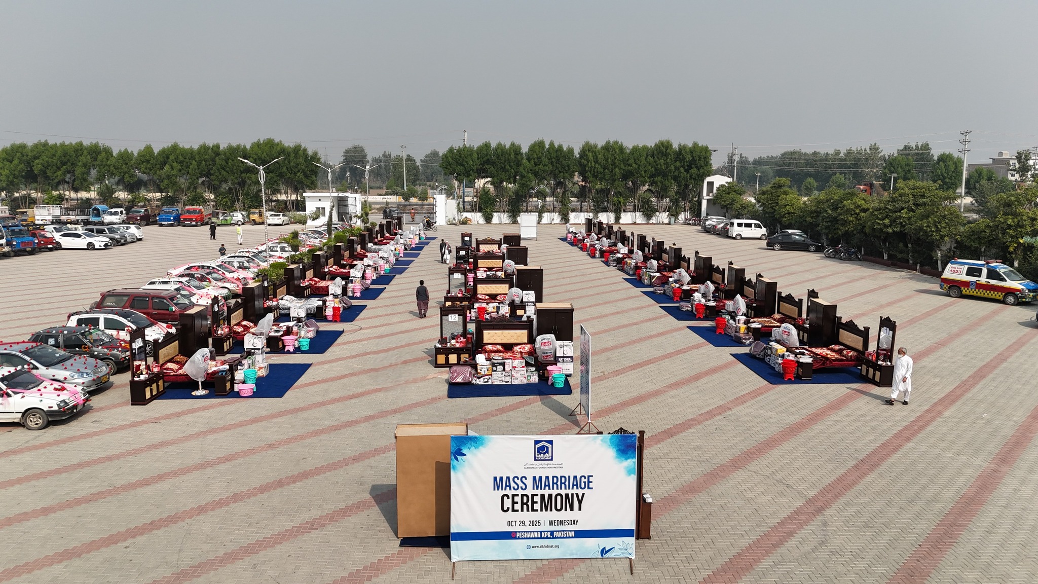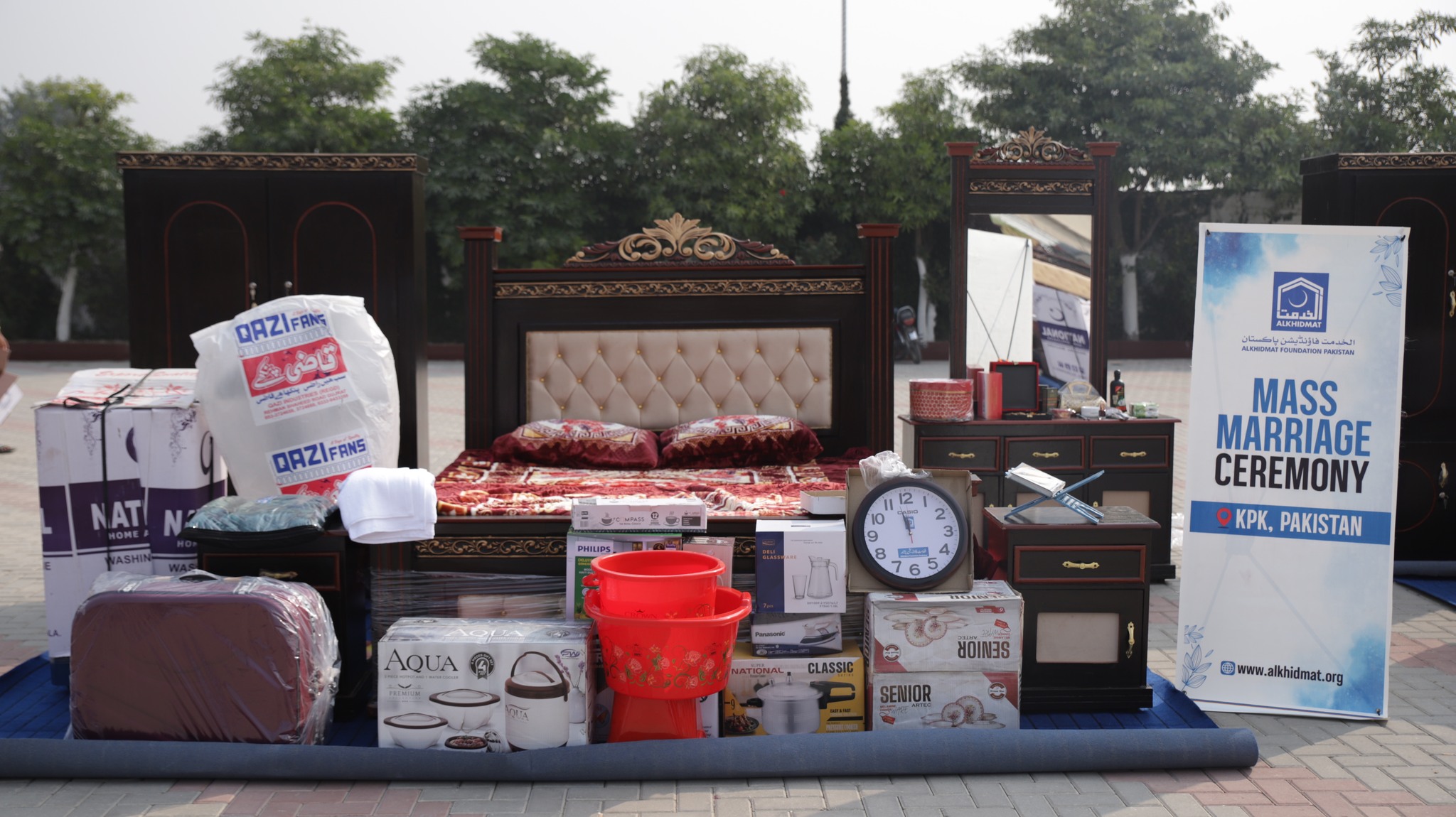 Each couple received household items worth Rs250,000, including a double bed, washing machine, pedestal fan, iron, juicer, hot pot, cookware, dinner set, tea and water set, kitchen set, bathroom set, and winter bedding package.
